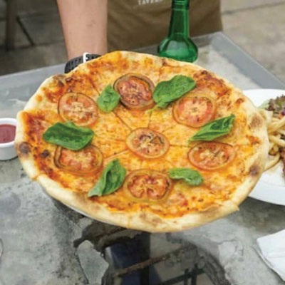 180g grass -fed burger patty, melting cheddar, gherkin, lettuce, Tomato, sautéed mushroom and tartar dressing, stack on a brioche bun, served with fries